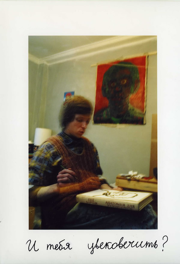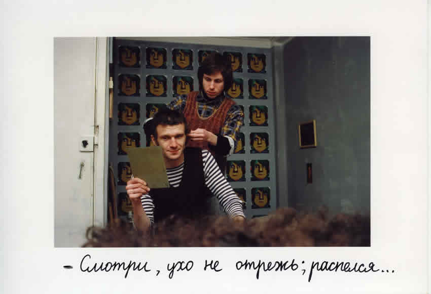 В 2002 году в Русском музее прошла замечательная выставка "Портрет в России. 20 век", а Олег Хвостов в арт-центре "Митьки ВХУТЕМАС" представил сто автопортретов. А ещё у Хвостова был замечательный автопортрет с приклеенными своими волосами. Вдохновившись всем этим, я попросил Олега сделать и мой портрет с волосами. Присутствующий при нашем разговоре Олег Шагапов предложил процесс создания этой картины поснимать. Мы не торопились, портрет делался почти два года, когда Шагапов не мог, я тоже снимал. Мы все увлеклись, в результате "История создания…" стала самостоятельным произведением, она предваряла презентацию самого портрета, которая состоялась на праздновании моего дня рождения в 2004-м году.